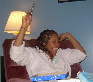 Eric then presented his gifts to Mommy: bath creams and stuff from Origins (Mommy’s favorite), scented bath soaps, and homemade coupons for twice monthly “spa nights” in the bathtub for Mommy to relax and have quiet time to herself throughout 2010. Mommy loved it!