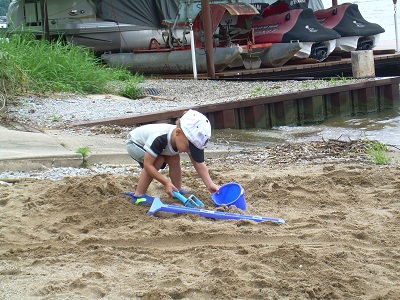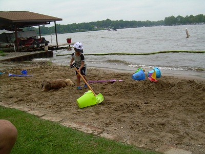 This weekend, we went to visit our cousin Jennifer.  It turns out most of the family was also there.  An impromptu last minute party occurred.  Everyone was there: Uncle Geof, Aunt Eileen, Chris, Jennifer, Jim, Mario, Anthony, Aunt Bev, Uncle Mike, Michelle, Michael, Uncle Joe, Aunt Traci, Josh, Jake, Aunt Deborah, Uncle Jeff, Aunt Cindy, Uncle Rob, Briana.  We hung out at the beach all afternoon and sat around a bon fire after dark.  Eric had so much fun!  Not only did he get to see all of his family…which he loves!  but he got to play at the beach all afternoon!