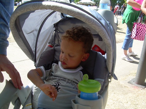 Eric and I went shopping on Friday for a tricycle. Mommy and I talked and agreed that Eric is beyond ready for a tricycle. He needs something with pedals to ride around under his own power. We went to Wal-Mart first. We had looked at Meijer earlier in the week. Wal-Mart has the same model that we saw at Meijer, except that it was pink and lavender, instead of red and blue. I had hoped for more selection than this. It seems every store is selling the same tricycle. We walked from Wal-Mart over to Once Upon A Child, a secondhand store for infants and children. They had only one tricycle, and it was very old and in poor condition. It was time to pull all the stops and bring on the big guns. We headed for Toys-R-Us! They had a great selection of different tricycles. Unfortunately, Eric had had enough of shopping, and he was ready for a nap. Eric was too distracted by all of the other toys and gimmicks on the tricycles. He did not want to sit and ride on them. We went home. We will buy a tricycle another day.