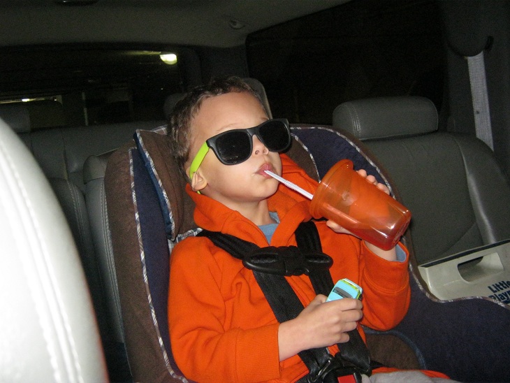 We spent a lot of time in the car over the weekend.  Friday, we drove to Covington.  Saturday, we drove to Elizabethtown and back to Covington.  Sunday, we drove home to Indiana.  We made frequent stops for potty breaks.  Eric is doing very well with his potty training.  Mommy and I are very proud of him.  He is still learning to go to the toilet before he goes in his pants, but we check with him frequently and take him to the toilet often.  He did especially well this weekend considering that we were using all manner of public toilets at gas stations, restaurants, the hotel…everything from clean to dirty, toilets to urinals.  He did especially well with the hotel toilet.