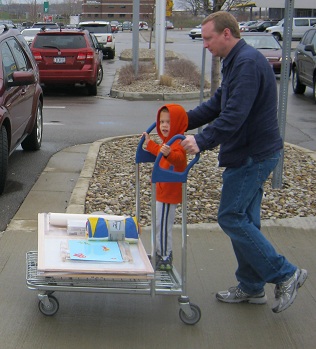 They took Eric to Pizza King for dinner on Saturday night.  They have a model train that brings drinks right to your table.  Eric is still talking about the train that brought his drink!