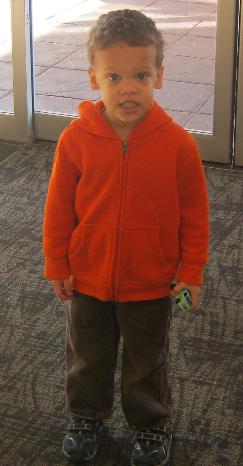 Good morning!  Let’s be quiet.  Mommy is still sleeping.  Okay.  Eric and I got dressed and went out to explore the hotel.  We took the elevator down to the first floor and checked out the breakfast buffet.  In the elevator, Eric was talking to the other riders.  He asked everyone which number they were going to and where their room was.  One man answered “45”.  Everyone chuckled a little, and I asked Eric if he saw a number 45 on the button panel.  To every one’s surprise, he pointed and said “right there, 4 and 5”.  Sure enough, the buttons for 4 and 5 were right next to each other.  You can’t outsmart this kid!  At the buffet, everything looked good!  They have pancakes, not waffles.  The man from the elevator ran into us again, and he said “Hi, 45!” to Eric.  We headed back up to our room to get Mommy.  Breakfast looked good, and we wanted to eat soon.  Mommy was awake when we got back to the room.  We all went for breakfast.  Mommy waited in line for an omelette, while Eric and I scooped up some eggs, bacon, ham, hashbrowns, and pancakes.