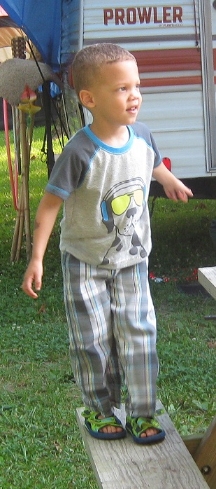 Once again, the D family gathered at Raccoon State Park for the annual camping trip.  Grandma, Grandpa, Aunt Bev, Uncle Mike, Michelle, Michael, Uncle joe, aunt Traci, Josh, Jake, Aunt Deborah, Uncle Jeff, Aunt Cindy, Brianna, and this year Tyler came with us.  We bought a camper earlier this spring, so we had plenty of room for Tyler.  Eric was, of course, very excited as he anticipated the camping trip.  Every time that he saw our camper in the driveway, he asked if we were going camping.  He was especially excited, because Tyler was coming with us.