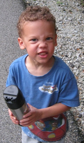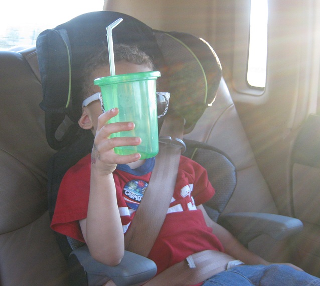 On the way home, Mommy tried to take his picture in the car, but Eric held up his cup to block his face and told Mommy, “No pictures in the car, Mommy!”