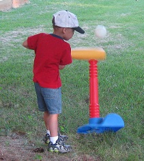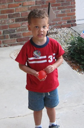 Later on the fourth, we went to a party.  Eric had a lot of fun playing with the other kids at the party.  He threw water balloons and played baseball!
