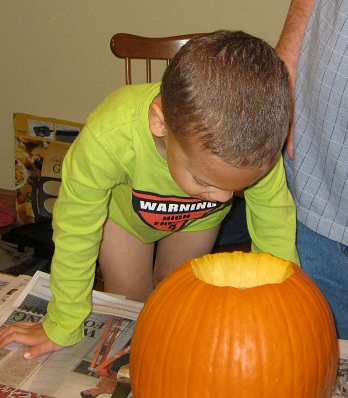 We carved our jack-0-lanterns! One was angry and the other was happy!