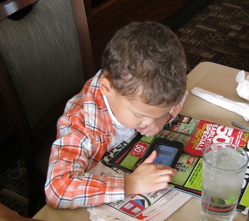 Eric playing “Angry Birds” on Aunt Carol’s iphone.