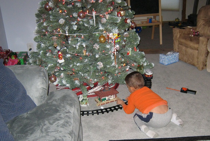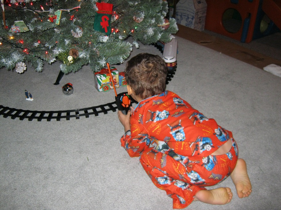 Eric loves the new train under our Christams tree!   He plays with it every day…except Wednesday when the batteries were dead.  I replaced the batteries promptly on Wednesday night…whew!