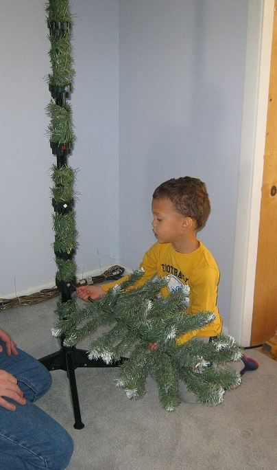 Eric helps put away the Christmas decorations in January.  He was not happy about putting away the train until next year.