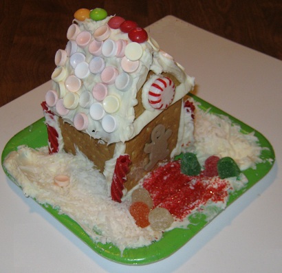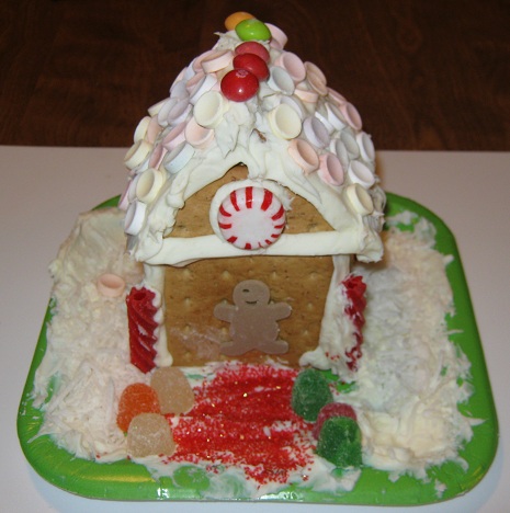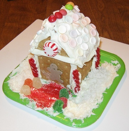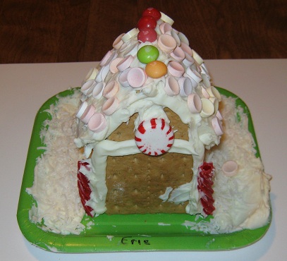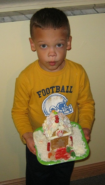Eric loves going to preschool!  Every day the teachers have fun activities and games for the children.  This week, the children decorated their own ginger bread houses.  Eric did a wonderful job.  His house looks very neat and festive!  His teacher made a point to mention to Mommy how carefully and meticulously Eric decorated his house.  His teacher was impressed.  Mommy and I are very proud!